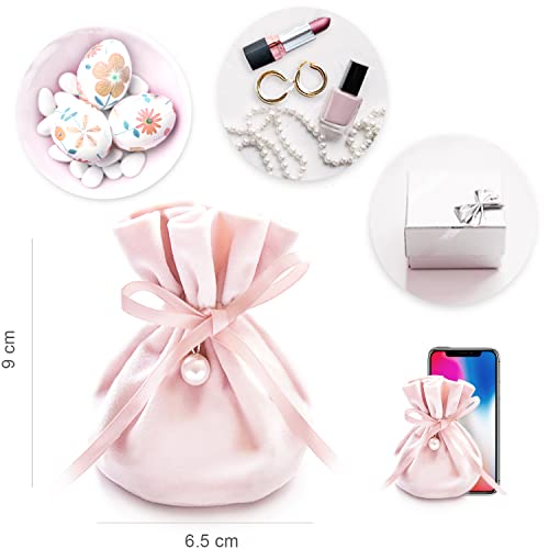 Sacchetto regalo realizzato in velluto di ottima qualità, durevole e resistente, di colore rosa pastello. Questo sacchetto regalo con ciondolo in perla sul serraggio, rende questa tasca vuota più elegante, sia da tenere e da offrire.
