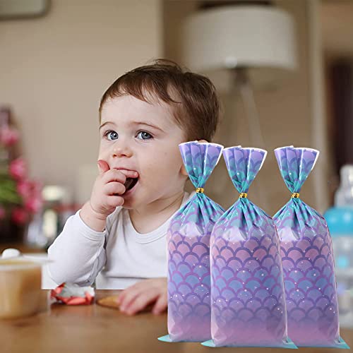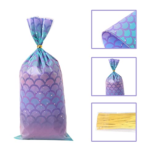 100 Pezzi Sacchetto Scala Regalo Sirena Sacchetti Regalo in Plastica Sirena Sacchetti Regalo Sirena Caramella Sacchetto Sacchettini di Festa a Modello di Sirena in Plastica per Festa Compleanni