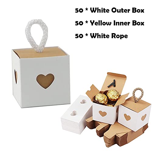 50 Pezzi scatola caramelle di nozze, Scatola di Caramelle in Carta Kraft, Scatole Caramelle Matrimonio, 5,5cm con Finestra a Forma Cuore, per Matrimoni Caramelle Cioccolato Rifornimenti Feste (White)