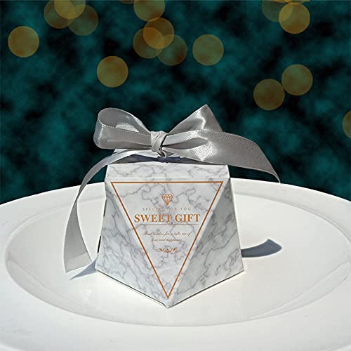 [Design Elegante]: Il design semplice e suggestivo a forma di diamante, abbinato all'abbellimento del nastro traslucido, rende elegante la scatola di caramelle. Credo che a tutti piacerà ricevere un regalo così ben confezionato.