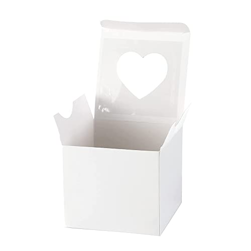 40 Pezzi Scatole per Cupcake, Contenitori per Cupcake, Scatole per Muffin, PVC Cartone Scatole Regalo Cupcake con Finestra Trasparente a Forma Cuore per Compleanno, Festa, Matrimonio (Rosa, Bianco)