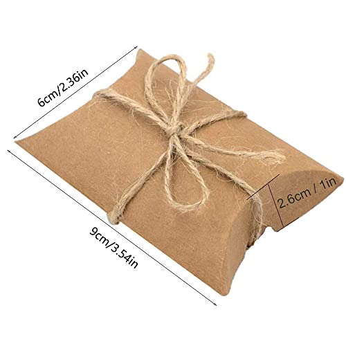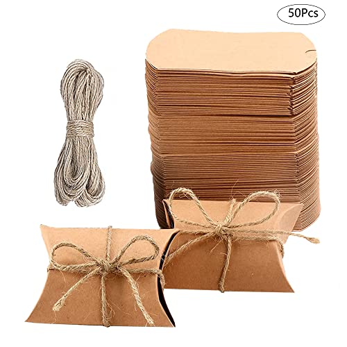 50 Pezzi Scatole Cuscini Carta Kraft, Mini Scatola di Carta Kraft, Mini Scatole Cuscini, Scatoline Portaconfetti in Carta Kraft, con Corda, Applica a Festa Laurea Matrimonio Compleanno Regalo
