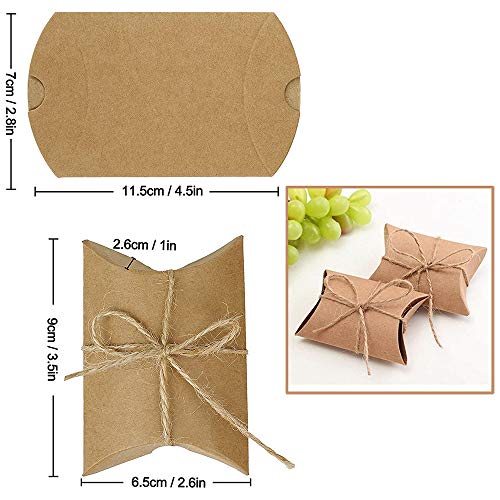 100 Pezzi Scatole Regalo Piccole, Scatole di Caramelle per Cuscini, Scatole Portaconfetti in Carta Kraft, Kit con Corda di Canapa per Bomboniere Baby Shower Forniture per Feste di Compleanno