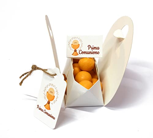 25+25+25 pezzi -25 Scatolina Portaconfetti Bomboniere prima comunione + 25 Tag + 25 Bigliettini Bomboniera festa party