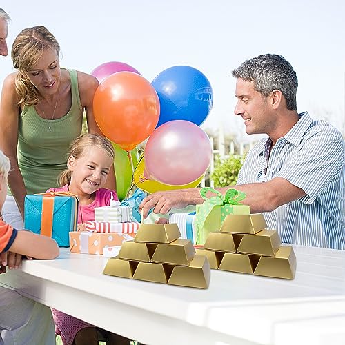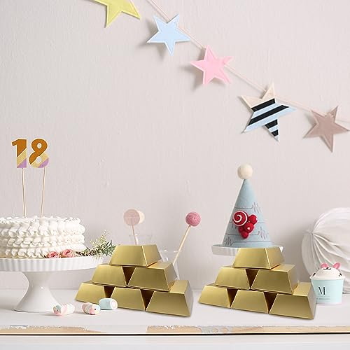 【Buon materiale】:Questa finta scatola di caramelle con barrette d'oro è realizzata in carta dorata,molto resistente e resistente.È visivamente accattivante,sembra un lingotto d'oro lucido ed è un'idea perfetta per decorare i tavoli delle feste
