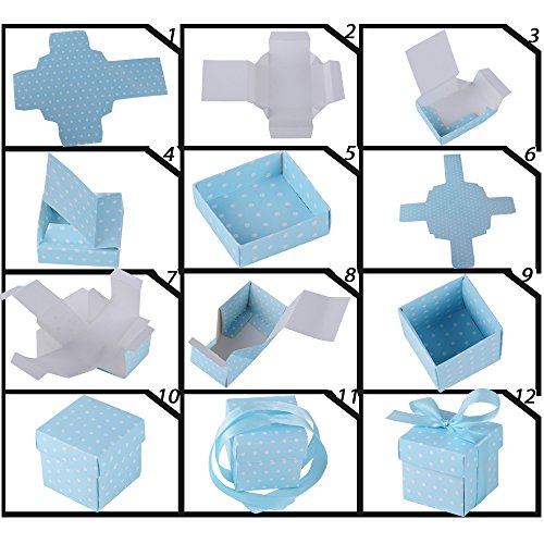 50 Pezzi Scatolina Scatola Portaconfetti con Nastro Bomboniere Segnaposto Regalo per Inviti Festa Matrimonio Nozze Laurea Battesimo Nascita (CELESTE)