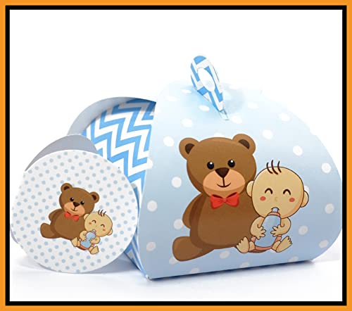 25+25 pezzi - Scatoline Bomboniere Battesimo Nascita compleanno Portaconfetti n. 25 pz + Bigliettini per Bomboniera/fazzoletti confetti 25 pezzi (Orsetto boy)