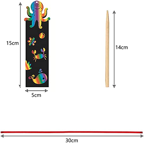 ✨Facile Usare: Usa lo stilo di legno per graffiare la superficie nera opaca della carta per rivelare i brillanti colori dell'arcobaleno sottostanti. Segnalibri Per Bambini possono essere molto divertenti per i bambini, i bambini possono diventare creativi e disegnare segnalibri con motivi diversi.