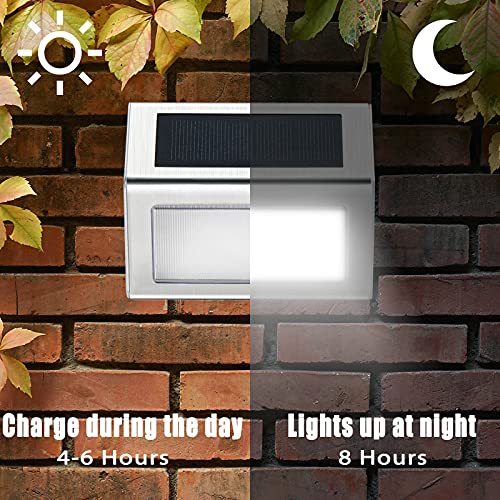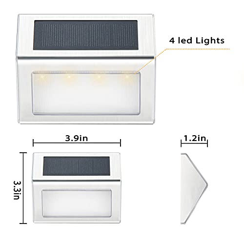 6 Pezzi Segnapasso solare wireless da esterno Lampada solare per scale a 4 LED in acciaio inossidabile IP44 impermeabile luci solari per esterni per gradini, ponti, recinzione