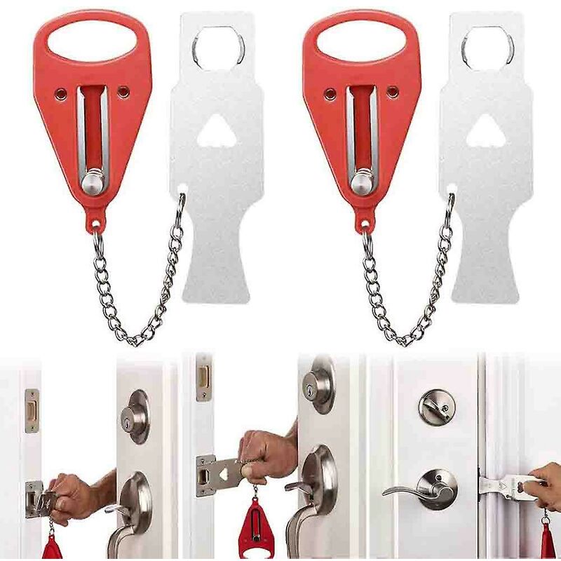 Blocco di sicurezza aggiuntivo Le nostre serrature portatili offrono maggiore sicurezza e privacy alla tua stanza. Una volta utilizzato il nostro lucchetto di sicurezza, le persone fuori dalla porta non potranno più aprire la porta con la chiave, impedendo l'accesso non autorizzato, soprattutto quando in viaggio e in hotel. Facile da trasportare: questo lucchetto da viaggio è abbastanza piccolo da stare in una borsa o in una valigia. Ogni lucchetto di sicurezza portatile viene fornito con una borsa portatile, è molto comodo e portatile, ideale per brevi viaggi e vacanze. Facile da installare La serratura di sicurezza può essere installata in pochi secondi senza attrezzi e senza trapani. Per prima cosa devi mettere la medaglia di ferro nel buco della serratura, quindi chiudere la porta e rimuovere la maniglia rossa, quindi inserirla nella serratura. Può anche essere estratta in pochi secondi se non ne hai bisogno. Design di alta qualità e sicuro Il lucchetto di sicurezza dell'hotel è