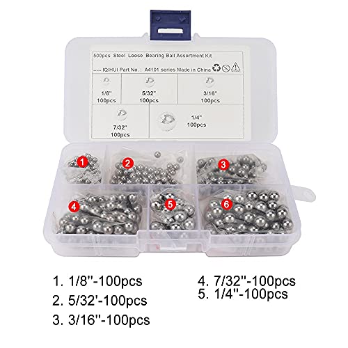 500 Pezzi Sfere per Cuscinetti in Acciaio Inossidabile, Sfere di Precisione 1/8''-1/4'' per Ruote di Bicicletta, Cuscinetti per Skateboard
