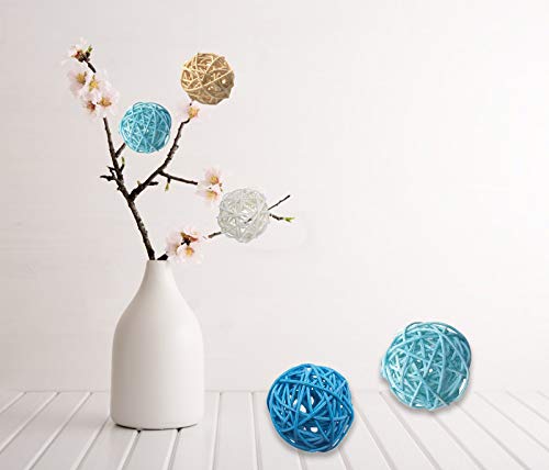 IDEALE SIZE: Il pacchetto include 20 pezzi palle in rattan, 4 colori: blu, grigio, bianco e azzurro. Ogni colore include: 1 pc sfera rattan 80 mm e 4 pc 50 mm palle vimini. Ricco di colore e dimensione in modo da poter avere più combinazioni.