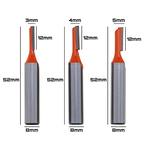 3 Pezzi 8mm Shank Groove Frese Set Frese per Router Frese a Singolo Flauto diritte in Acciaio al Carbonio Fresa per Legno Lavorazione del Legno Utensili di Taglio 3mm/4mm/5mm