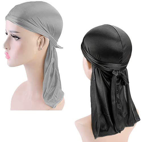 2 Pezzi Silky Durag Cappello da Uomo Soft Pirate Durag, Cappuccio Elastico Waves Unisex con Code Lunghe e Cinghie Larghe Cappello Durag Pirate Hat Traspirante per Donna Uomo
