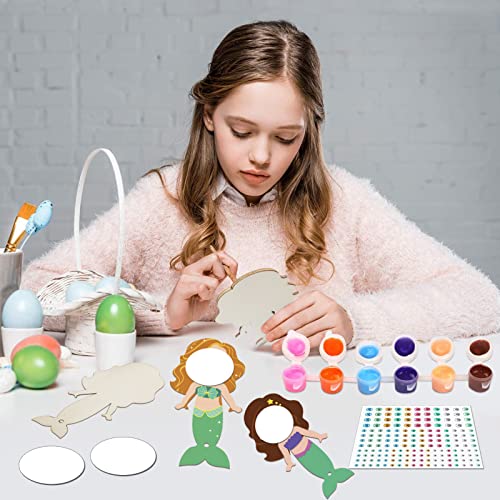 29 Pezzi Kit Sirena di Legno, Lavoretti Creativi per Bambini, Kit Disegno Bambini, Attività Creative per Bambini, per Il Disegno dei Bambini, L'insegnamento Scolastico, Regali per Bambini, ecc