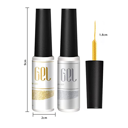 2 Pezzi smalto gel unghie, liner semipermanente unghie,8ml Gel per Unghie per Linee Oro e Argento,gel liner nail art per Nail Art Per Disegnare Linee e Manicure Da Salone...