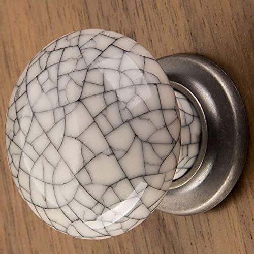 10 pezzi SOTECH Pomello per mobili ORVA Ø: 35 mm/Altezza: 33 mm Color Crema craquelé e base in Metallo Effetto Argento Antico Pomello per mobili