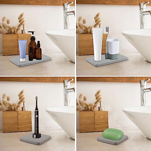 4 Pezzi Sottobicchieri Diatomite Assorbenti Acqua, Asciugatura Istantanea Vassoio Lavandino Diatomite Vassoio Organizer Lavello per Cucina Bagno Sapone Articoli da Toeletta (Grigio Chiaro)
