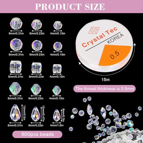 Otterrete: 600pcs 8mm perle di vetro di cristallo, 1 rotolo di 0,5 millimetri * 15m corda, un numero sufficiente di perle di vetro di cristallo in forme diverse per soddisfare le vostre esigenze diversificate.