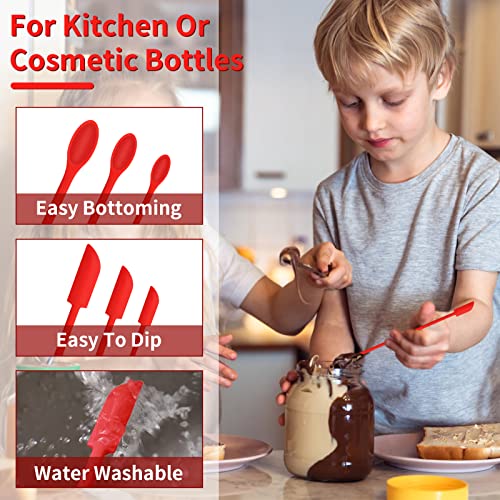 3 Pezzi Spatole Silicone Piccole, Mini Raschietto con Cucchiai Lunghi Raschietto Spatola per Trucco per Cottura Torta Decorazione Mescolare, Rosso