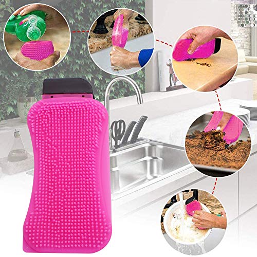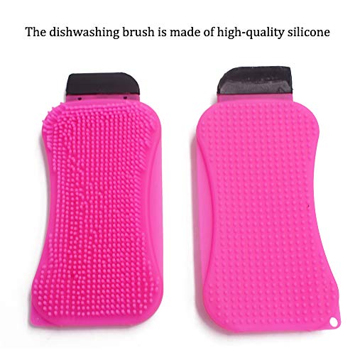 2 Pezzi Spazzola per Piatti in Silicone Multiuso Cucina Spugna in Silicone da Cucina Spazzola Multifunzione Strumento di Pulizia Spugne per la Pulizia del Piatto Pentola Frutta Verdura (Rosa)