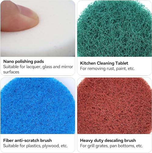 Opzioni di Pulizia Versatili: Il tappetino bianco in schiuma è ideale per superfici lisce come pelle, vetro e marmo, mentre il tappetino verde da cucina rimuove efficacemente ruggine e depositi di calcare (Nota: non utilizzare su superfici rivestite.) Il tappetino marrone ad alte prestazioni è perfetto per affrontare lo sporco ostinato (Nota: NON adatto per la pulizia di mobili in legno.), e il tappetino blu in microfibra è delicato sulle superfici sensibili.
