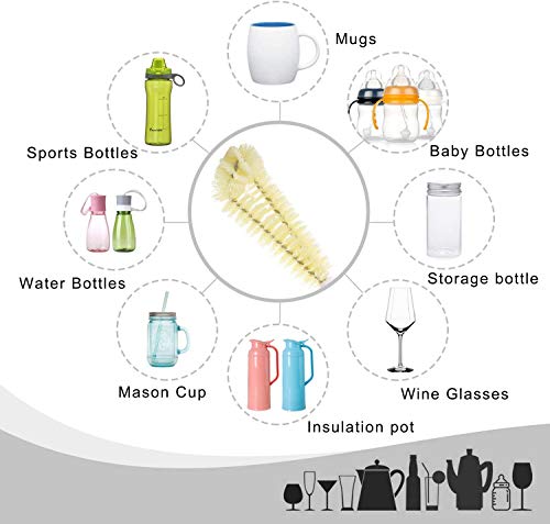 【Sicuro e sano】 La spazzola per la pulizia della bottiglia è fatta di setole in nylon per uso alimentare, non contiene materiali nocivi, nessun odore, sicuro e innocuo. Dopo l'uso, la bottiglia può essere mantenuta pulita e priva di batteri, garantendo la salute.