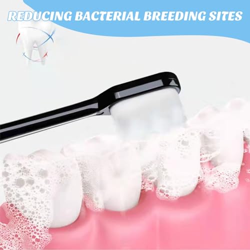 【Design unico dello spazzolino】 le setole morbide dello spazzolino aiutano a prevenire la recessione delle gengive da spazzolatura aggressiva, con una funzione di pulizia completa, adatta anche per la pulizia della lingua.Il design ondulato può pulire la bocca senza vicoli ciechi, quindi non devi sentire dolore quando ti lavi.