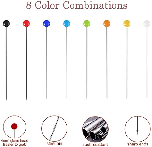 250 Pezzi Spilli da Sarta,Spilli Dritti con Testa Cuscino a Pois 38mm Perni con Testa in Vetro,Una varietà di Colori per Cucire, Fai da Te, Artigianato