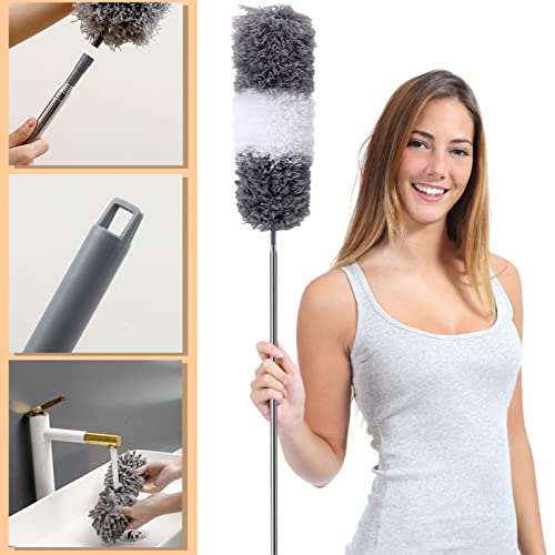 【Alta qualità】 Spolverino in microfibra realizzato in materiale in microfibra di alta qualità con polvere super assorbente. Cattura e assorbe rapidamente polvere fine e capelli da automobili, ventilatori a soffitto e cornici, pulito e veloce, semplice, risparmiando metà del tempo di rimozione della polvere. Il nuovo design in acciaio inossidabile ha una lunga durata e ruggine.