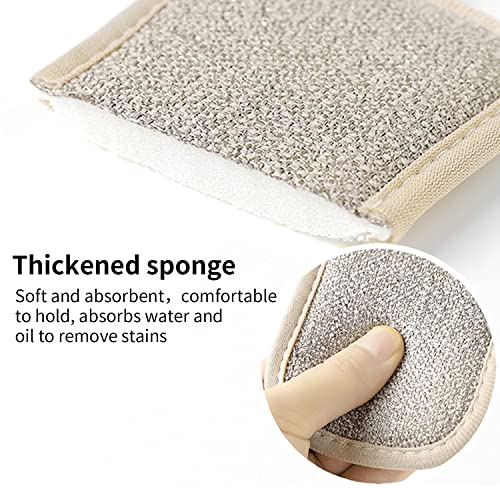 DISEGNO A DOPPIA FACCIATA: Le spugne per piatti possono essere utilizzate su entrambi i lati. Un lato è in microfibra, un lato è in nylon e lo strato intermedio è una spugna ispessita. Adatto a varie superfici, rimuove facilmente sporco, macchie di olio e altro.