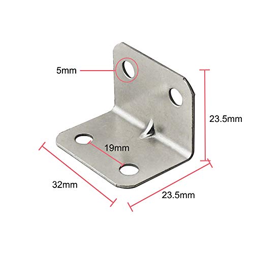 100 Pezzi Staffa Angolare in Acciaio Inossidabile, Staffa Angolare a Forma di L/Supporti per Mensole,Staffa Metallica a 90 Gradi, Staffa ad Angolo Retto, 32mm * 23,5 mm
