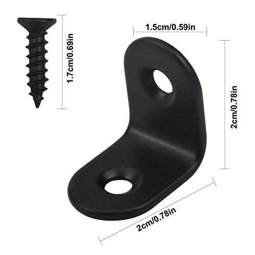 20 Pezzi Staffa Angolare, Parentesi Angolare, Bretelle Angolari in Acciaio Inox, 90 Gradi Giunzione Forma a L Squadrette Angolar con 40 Viti per Mensola di Legno Finestre Armadi, 20 * 20mm (Nero)
