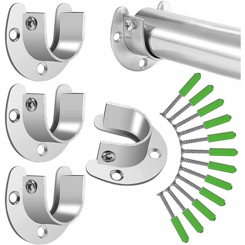 Staffa per aste per tende a forma di U da utilizzare con aste appendiabiti fino a 25 mm di diametro. Costruito in acciaio inossidabile di alta qualità, spesso e resistente alla ruggine, che lo rende più durevole da usare. L'esclusivo portacanna flangiato a forma di U consente una facile installazione e una rapida rimozione della canna. Ogni supporto per tubi tondi ha un design a 3 fori che aumenta notevolmente la stabilità. Un set di due supporti consente un peso totale fino a 200 kg. Ideale per tubi guardaroba, portasciugamani e aste per tende. Specifiche: Colore: argento Materiale: acciaio inossidabile di alta qualità Dimensioni: 52 x 27 x 23 mm Diametro: 25,5 mm Spessore: 2 mm I prodotti includono: 4 staffe per aste per tende 12 tubi di plastica 12 viti Note: < br/>1. Si prega di consentire 1-3 errori dovuti alla misurazione manuale. 2. A causa della differenza tra diversi monitor, l'immagine potrebbe non riflettere il colore effettivo dell'articolo. Per favore, prendi quello vero