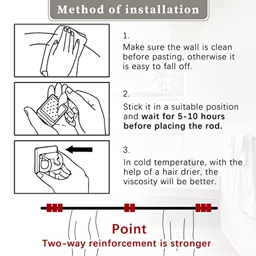 Costruzione durevole: queste staffe adesive per aste per tende sono realizzate in materiale plastico di qualità, robusto e durevole da usare, elevata durezza, non facile da deformare o rompere, retro con colla, facile da installare senza alcuno strumento, buon materiale può servirti a lungo volta