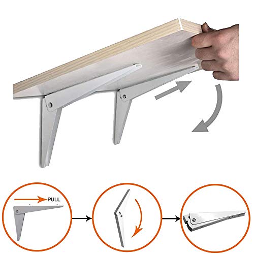 Ampiamente usato: queste robuste staffe pieghevoli sono perfette per molti lavori fai da te. Ideali per negozi, officine, barche, camper, cortile, rimorchi, camera, cucina, balcone, bagno, ecc. Abbastanza da essere utilizzato come libreria, scaffale da cucina, libro di mostre, scaffale da giardino, staffa da parete esterna, ecc.
