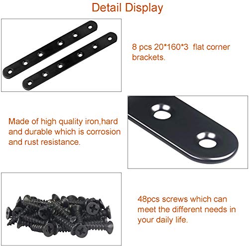 8 Pezzi Staffe Angolari,90 Gradi Forma di L Supporti Angolo Staffe,Nere Metallo Staffe Angolare con Viti (20 * 160 * 3mm)