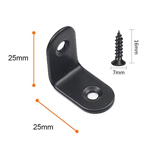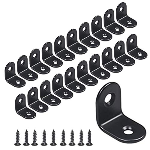20 Pezzi Staffe Angolari 90 Gradi Nera,25x25mm, Staffa Angolare in Metallo a 90 Gradi Staffa a L a Forma di L per Mobili, con Viti