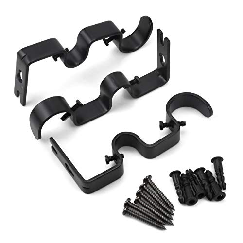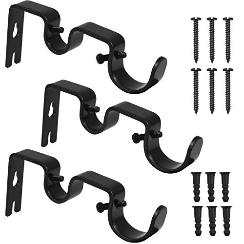 3 Pezzi Staffe Aste per Tende Doppio, Resistenti Supporto Palo per Tenda, Metallo Tendaggi Asta Staffa da Parete con Viti per Casa Camera da Letto Ufficio Finestre (Nero)