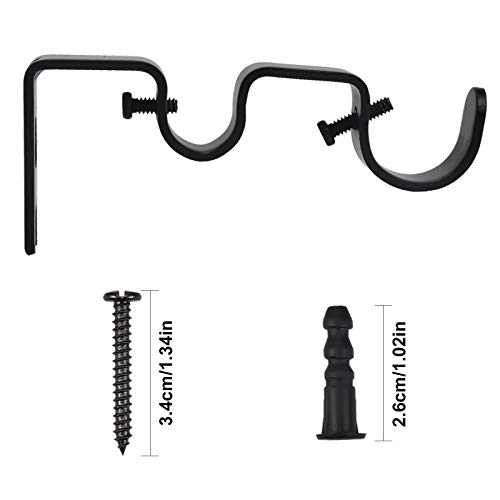 Doppia staffa per asta per tende: la tazza anteriore ha un diametro massimo di 1 "asta e la tazza posteriore ha un diametro massimo di 5/8". Si prega di controllare attentamente le dimensioni prima di acquistare.