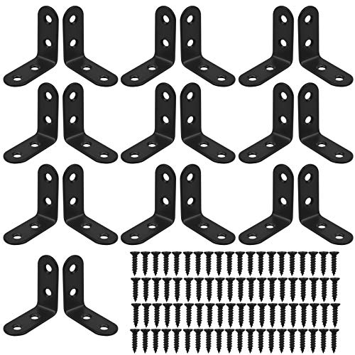20 Pezzi Staffe per Mensole in Acciaio Inox, 40 x 40mm Staffe Angolari in Metallo, Supporto per Mensola, 90 gradi Angolo Retto Staffe Mensola a Muro, Staffa Angolare a L con 80 Viti (Nero)