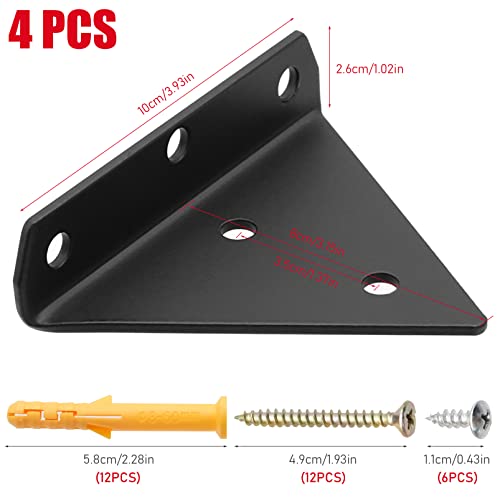 【Otterrete】 4 staffe per mensole forma triangolare, taglia 10 × 8cm/ 3,93 × 3.15in, 12 viti lunghe, 6 viti corte, 12 tappi di gomma