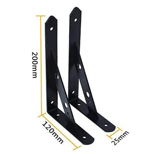 4 Pezzi Staffe per Mensole Pesanti, Supporti per Mensole Triangolare, Supporto Angolare per Mensole ad Angolo Retto per Montaggio a Parete, Nero, 200mm x 120mm