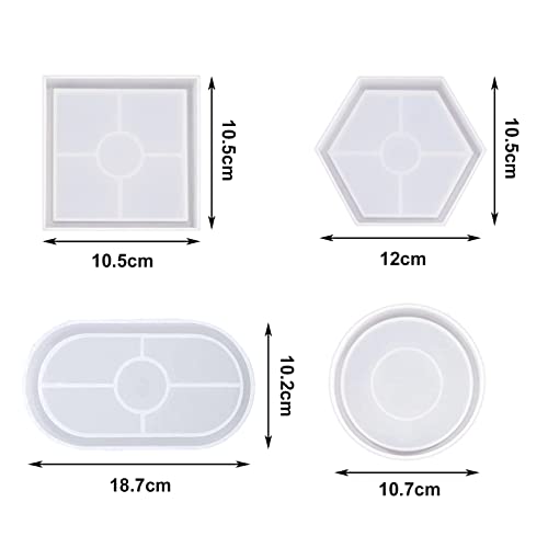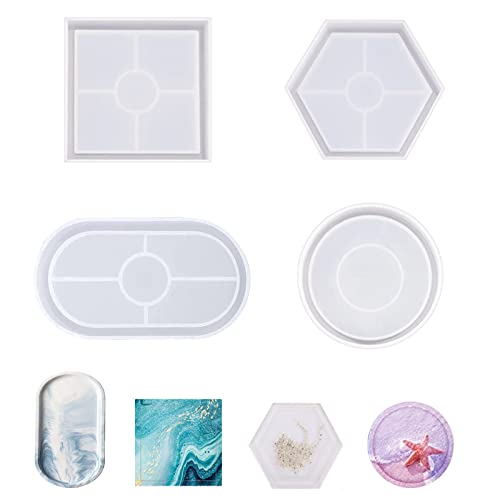 4 Pezzi Stampi per Vassoio in Resina Epossidica, Stampi in Silicone Kit di Stampi in Resina per Vassoio Fai da Te, Stampo per Sottobicchieri in Resina Epossidica, per Fare Coaster Vassoio