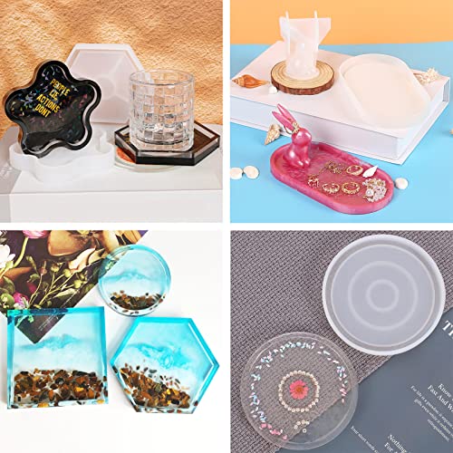 Forme diverse: i nostri stampi in silicone in resina sono disponibili in 4 forme diverse: esagonale/ovale/rotondo/quadrato, che possono essere utilizzati per realizzare sottobicchieri o vassoi di diverse forme e gli stampi sono riutilizzabili.