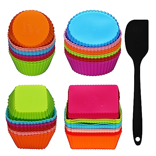 Riceverete 48 Stampo per Muffin in Silicone( forme, 6 colori), 1 cucchiaio di miscelazione