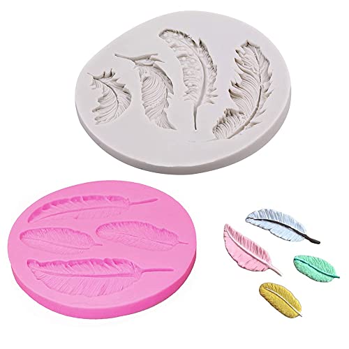 2 Pezzi di Stampo in Silicone Fondente Piume, Stampo Piuma per Torta a Forma di Piuma, Teglia per Fondente di Piume, per Caramelle, Cioccolato, Torte, Decorazioni per Dessert ecc