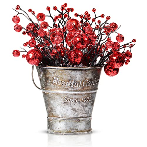 12 Pezzi Steli di Bacche Artificiali di Natale Albero di Bacche con Paillettes Glitter Ornamenti Decorativi per Albero di Natale Ghirlanda di Fiori da Sposa Artigianato Fai da Te (Rosso)