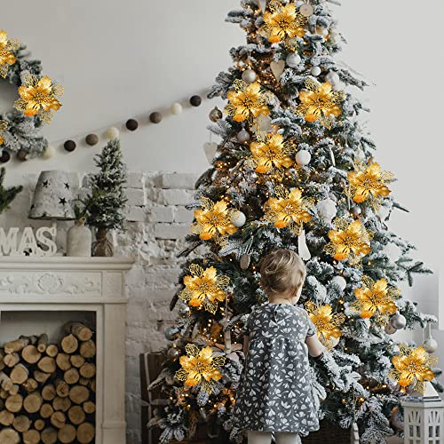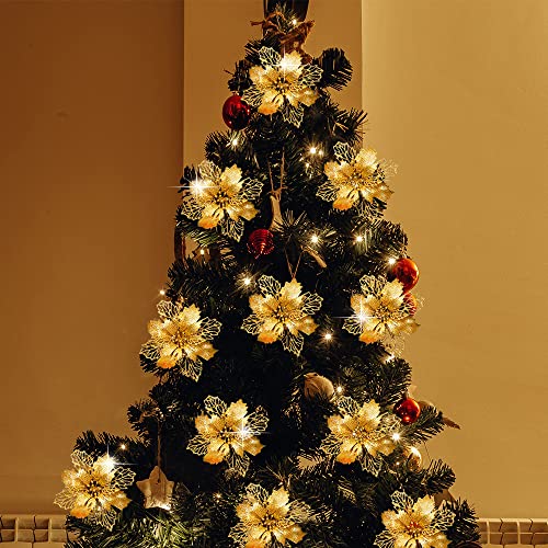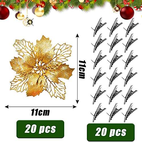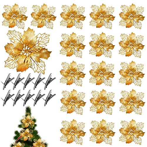 20 Pezzi Stelle di Natale Artificiali,Stelle Natale Fiori,Fiori di Natale Artificiali,Fiori per Albero di Natale,Fiori Decorativi di Natale,Addobbi Albero di Natale Fiori(Oro)