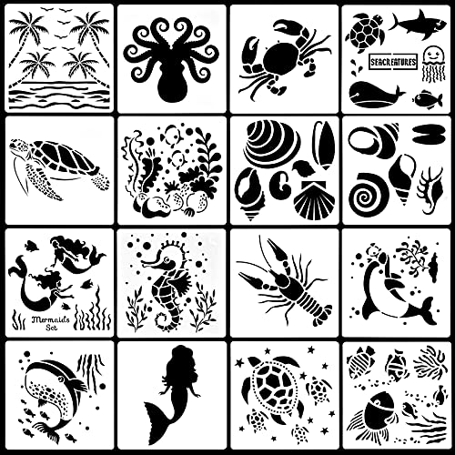 16 Pezzi Stencil di Animali Marini, Stencil di Pittura di Creature di Mare, Bambini Disegnare Stencil, modelli riutilizzabili per album di ritagli, Bambini, Studenti, Artistiche, Pittura Parete